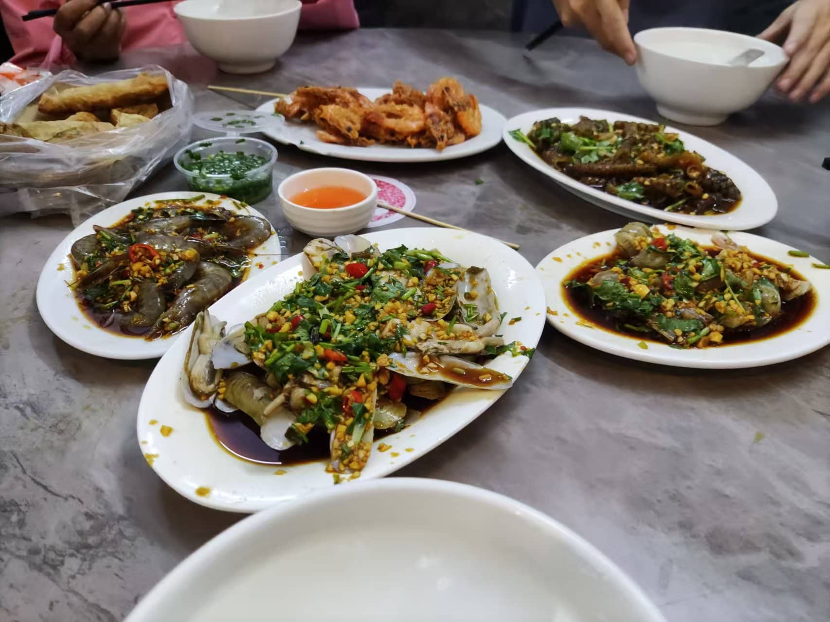 在乘坐完渡轮,体验了韩江的冬风和景色之后,就到了东市凯兴白粥吃生腌和白粥了。到的时候,真的是座无虚席。等待约二十分钟才能够排到。好友作为导游,为大家点了生腌濑尿虾、生腌鲜虾、炸虾、鱼皮、腌蛏。前两样说是生腌,后面的那些都是熟的。当然,我没有多吃,只是浅尝辄止,因为害怕拉肚子而影响旅途。对于炸虾,由于已经油炸过了,自然是吃不出什么,沾的也是酸辣酱。而鱼皮,拌的是加了芥末的酱油,吃起来就突出了有鱼皮的爽脆、鲜甜。腌濑尿虾就有点遗憾,不知道吃什么,那丁点的肉,实在是鸡肋也。但对于生腌鲜虾,确实有点意思,那种腥味和鲜感,搭配灵魂的料汁,确实是一种奇妙且特殊的口感。