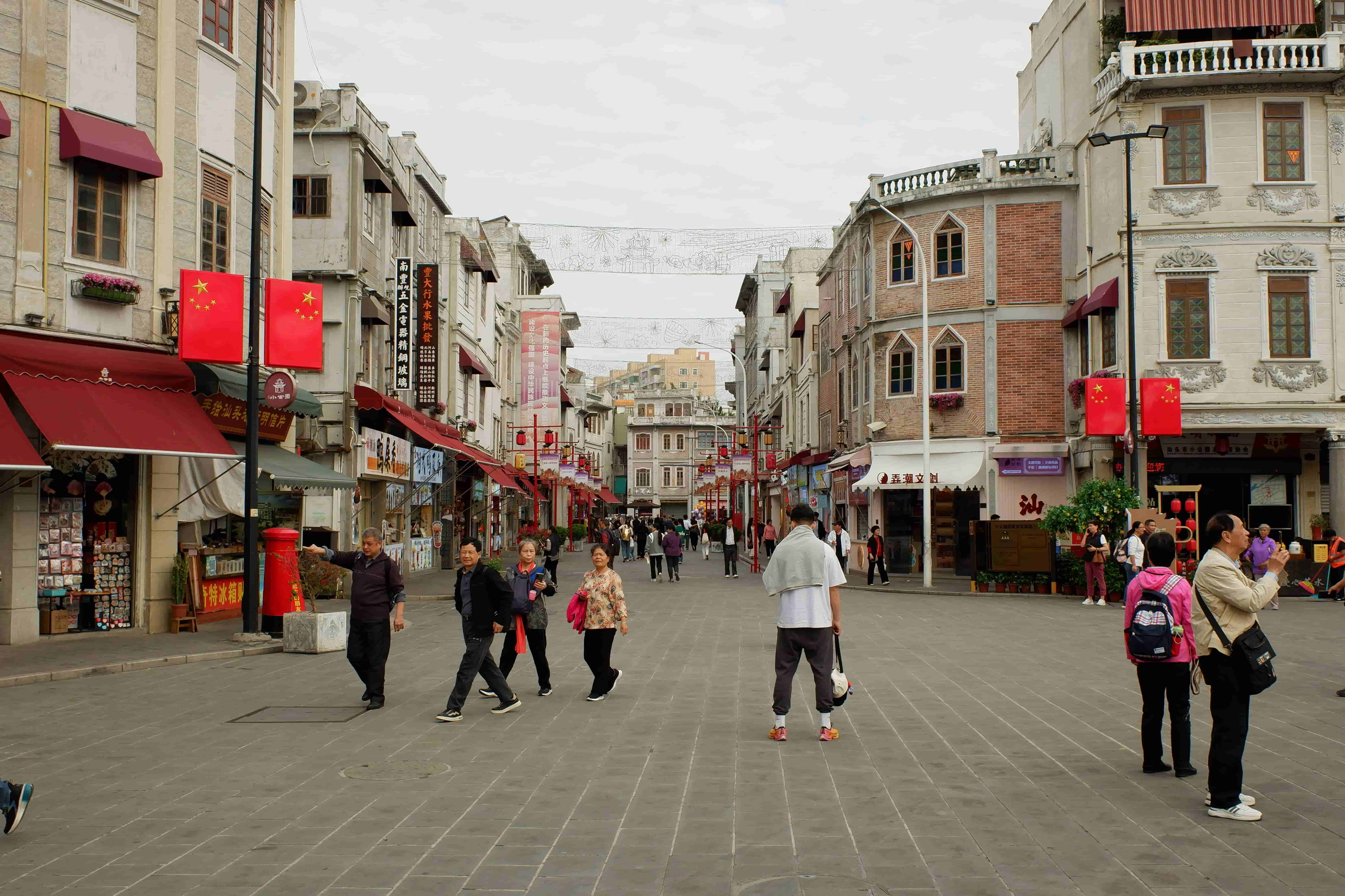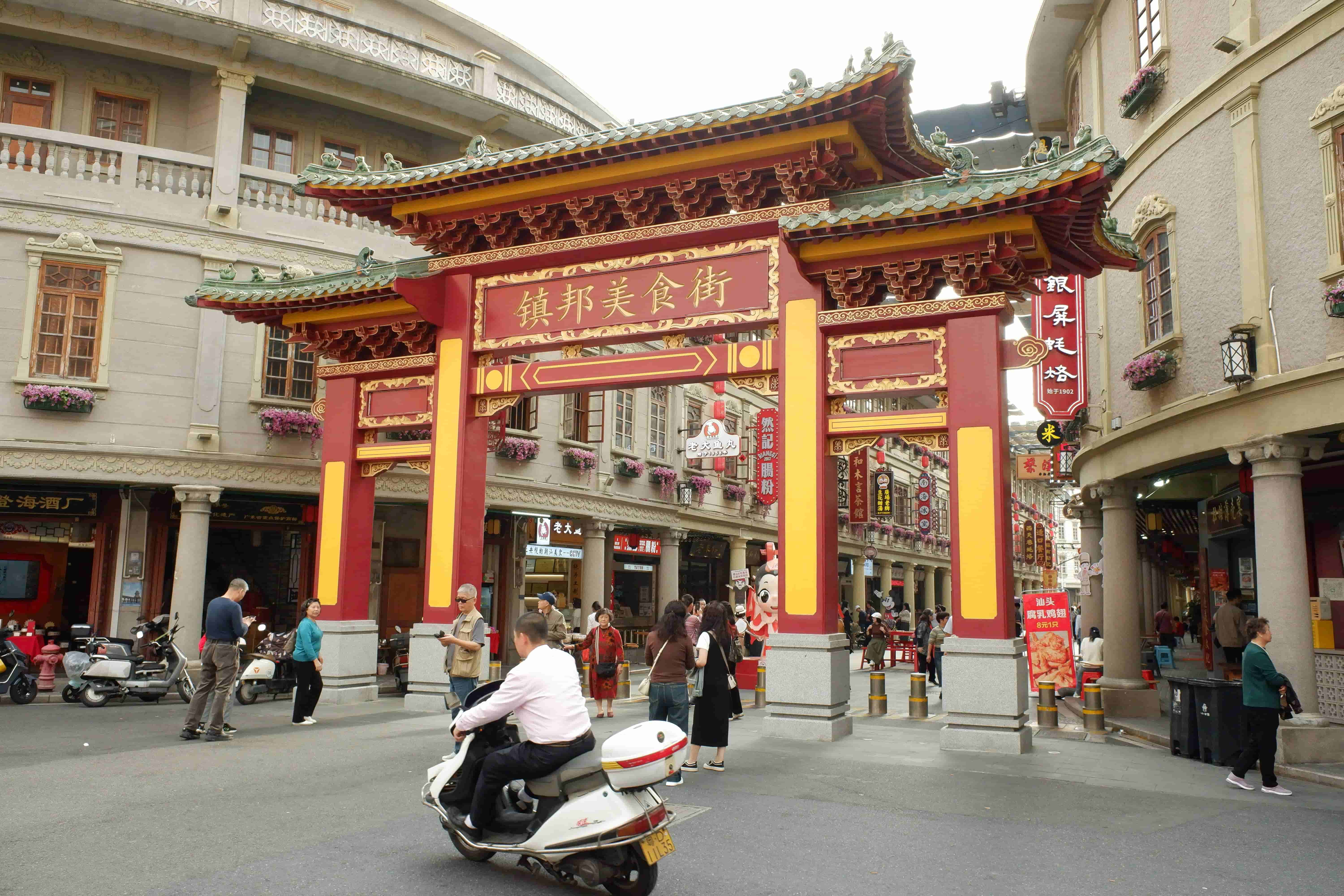 第一个目的地,就是下了𬒈石大桥,到老城区的“小公园景区”了。映入眼帘的是一栋栋骑楼,这种中西结合的款式,在广州老城区也有。不知道是不是因为大环境经济的原因,很多商铺都是关门的,且很多商铺也没有营业的迹象。到了镇邦美食街,逐渐开始兴旺起来了,各地口音的行人都在。无论是普通话还是白话,抑或是一些听不懂的方言都有。由于不是旅游旺季的原因,人数也不甚多。两边的招牌都是新做旧式的,即便如此也凸显了商埠文化的特色,大约是上世纪初的风格。