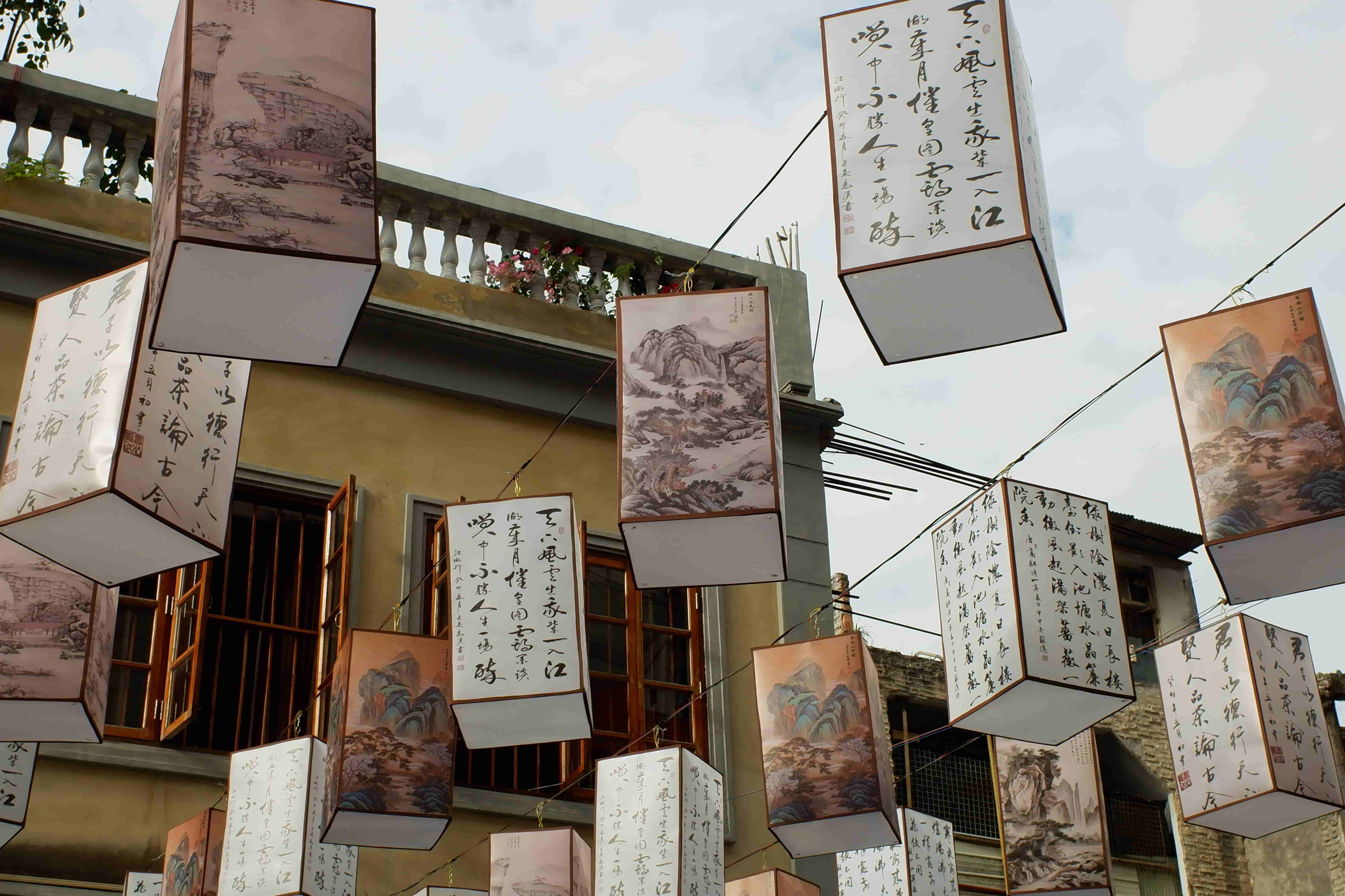 当然,在沿路欣赏时,也是留意到一些比较有意思的文化细节。无论是挂的灯笼,还是招牌等等,都充满了传统的书画特色。“百货大楼”据好友所讲,是真的旧物了。而其他虽然是说新制的,但也确实有书法的味道,即使是电脑字体,但也不是那些纯粹的黑体、宋体等,而是颜体。在这点细节上,还是给予充分的肯定,以及事后回想时的喜悦之情的。