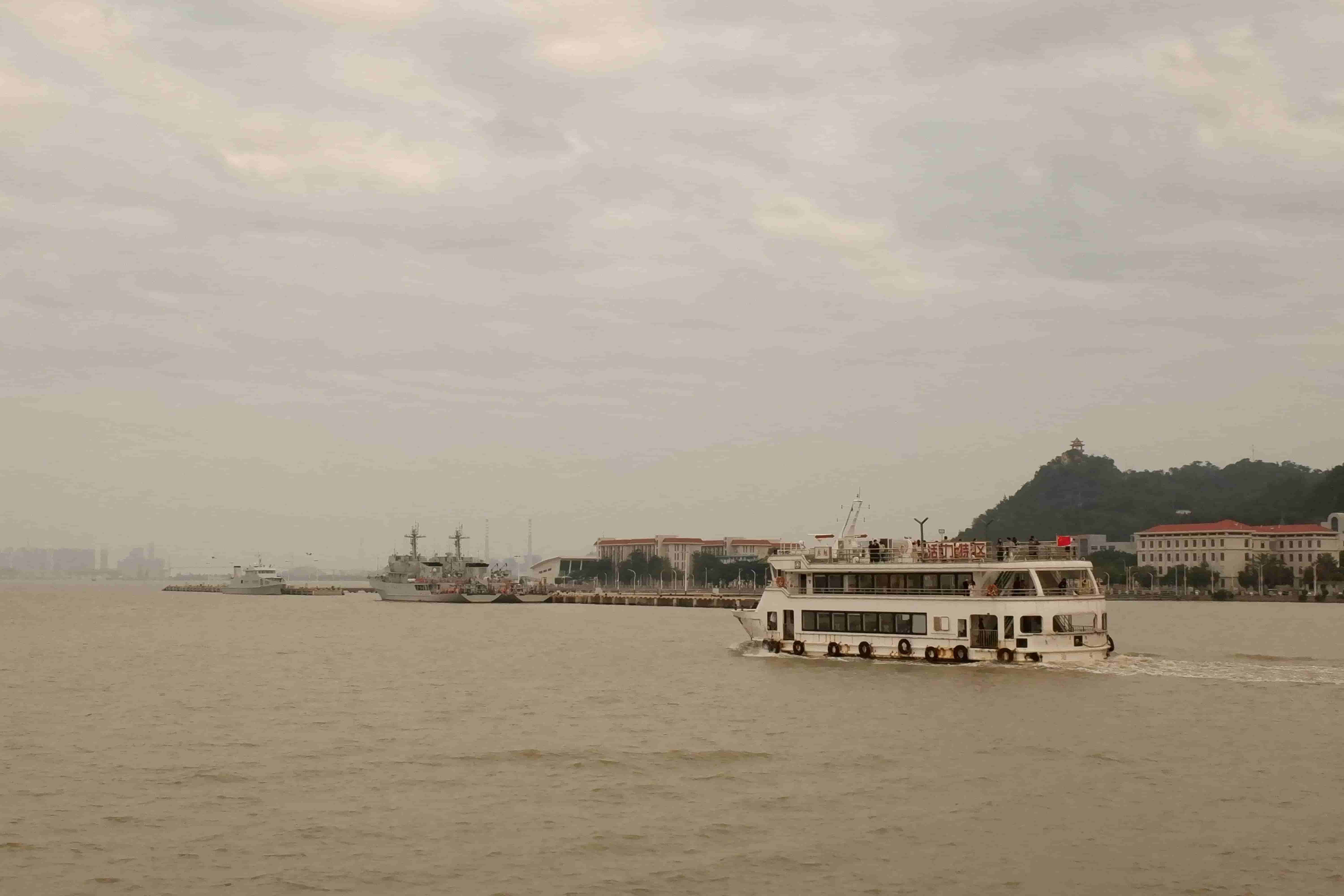 在傍晚时,去坐了渡轮。我想起了在香港坐渡轮的价格,只需要港币两元多,而这里的价格却也不贵,只需要一元。从小公园处骑共享单车过去了渡口。排队的人真的很多很多,已经开远的渡轮上也人头涌动。时值初冬,当我坐在渡轮上时,吹来阵阵凉爽的江风,那一个自在。而在江的对面,停靠着几艘灰色的船只,我想了想,那不是我们的海军还是什么。顺眼望去,军舰上还有水兵在工作。原来那是一个军港,当另一艘渡轮和军舰同框时,我按下了相机的快门。我想起了那首《军港之夜》歌曲,这幅照片,是军民共享平安的最好见证。