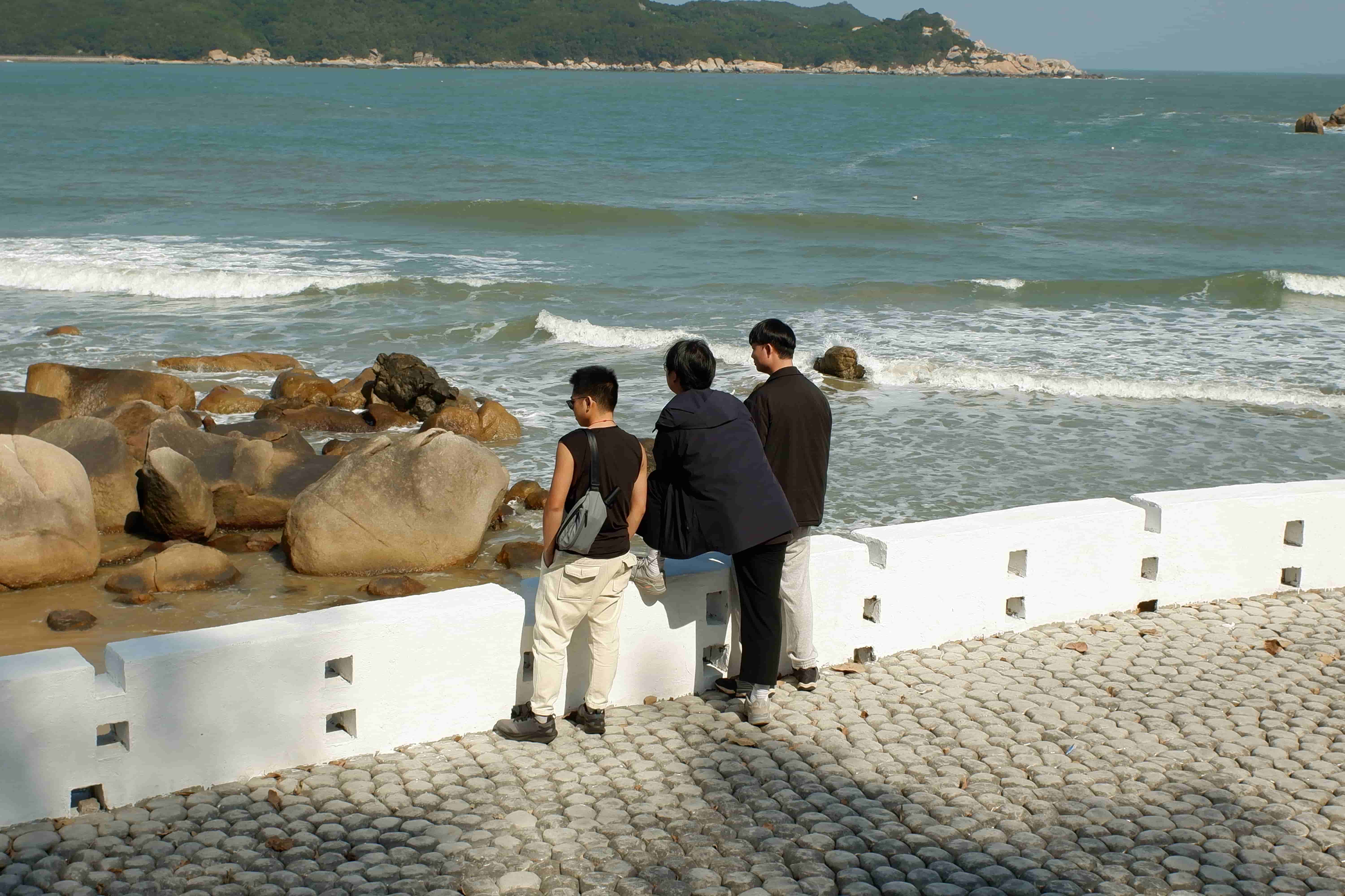从南澳大桥前往南澳岛,这是唯一的道路。大桥的景色也非常优美,海空一色,无尽的大海。海平线上隐隐约约看到一些船只、吊塔的影子,而海鸟也逆着海风在滑翔,似乎定格在那里一样。到了岛之后,沿着海岛的路来逛,打开车窗吹着海风,是多么地惬意和悠哉啊。微微咸的海风和拂面的温柔,似乎是这片海样对游客最大的敬意了。其中有一处海湾,海风呼啸、浪涛汹涌,我们也在那里停留驻足了一下。当我听着那海浪前仆后继地冲锋上岸时,似乎把我的忧愁一下子带走了。温暖的阳光和凉爽的海风交替着,似冬又春的双季感受,或许只有岭南海边才有如此的美妙。