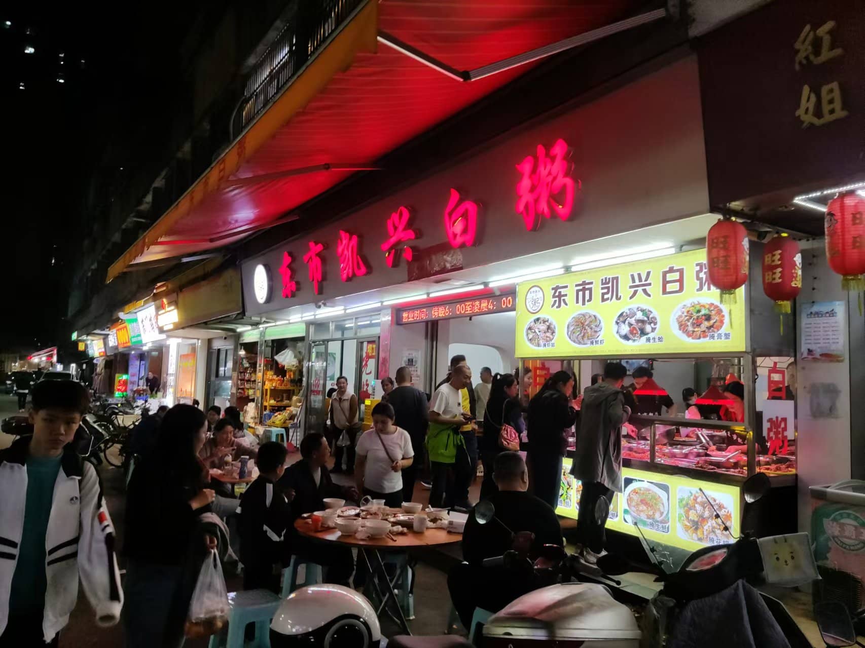 在第二天起来,去彬记牛肉牛肉丸店吃早餐了。我由于不知道什么好吃,遂选择了和好友一样的沙茶酱拌面加肉丸汤。面条倒是感觉平平无奇,但面条上的牛肉片倒是非常新鲜爽口,且有一种难以表达的滋味。在吃完了牛肉片面条之后,就开始喝汤了。汤是两只牛肉丸加几片菜,牛肉丸和昨天的味道差不多,新鲜、弹牙。那一种无法表达的味道,是真的在惠州之地吃不到的。而汤的底部倒是有一些奇奇怪怪的东西,或许是蒜末,又或者是一些配料,滋味也甚是可以。(可惜,无图)